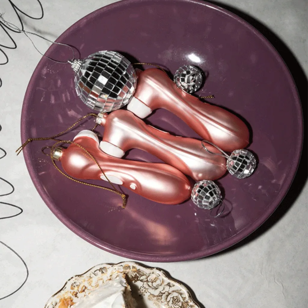 Voeg een speelse draai toe aan je kerstversiering met deze prachtige Sattie kerstbal, geïnspireerd op de bekende Satisfyer pro 2. Het is niet alleen een mooie toevoeging aan je boom, maar zorgt ook gegarandeerd voor wat glimlachen en nieuwsgierige gesprekken tijdens de feestdagen. Met deze kerstbal laat je zien dat je een oog hebt voor stijl, plezier en verfijning.