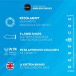 Aan de binnenkant zit een milde lidocaïne coating die de gevoeligheid van de eikel licht vermindert. Dat geeft je meer controle en zorgt voor rust tijdens de seks. Het latex is soepel en dun, waardoor het condoom prettig aanvoelt voor jullie allebei. Dankzij de voorgevormde teat tip en rechte pasvorm zijn ze eenvoudig om te doen en blijven ze goed zitten.
