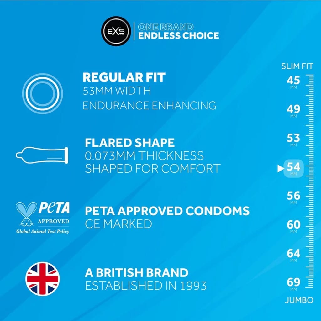 Deze vegan delay endurance condooms van EXS Condoms zijn er voor momenten waarop je graag wat langer wilt genieten. Ze helpen je het klaarkomen uit te stellen, terwijl het gevoel natuurlijk blijft en de bescherming betrouwbaar is. Ideaal als je zoekt naar vertraagde condooms die comfortabel zitten en bewust zijn geproduceerd.