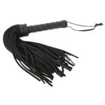 Deze spannende, zwarte Zado Grote Leren Flogger is een musthave voor iedere serieuze BDSM-liefhebber. De zweep, gemaakt van echt rundleer, heeft brede leren strengen. Hiermee kun je je partner op verschillende manieren prikkelen. Laat de strengen zacht over de huid glijden voor een sensuele aanraking. Of gebruik een harde slag om de spanning op te bouwen. De flogger geeft je veel mogelijkheden om het SM-spel te intensiveren.
