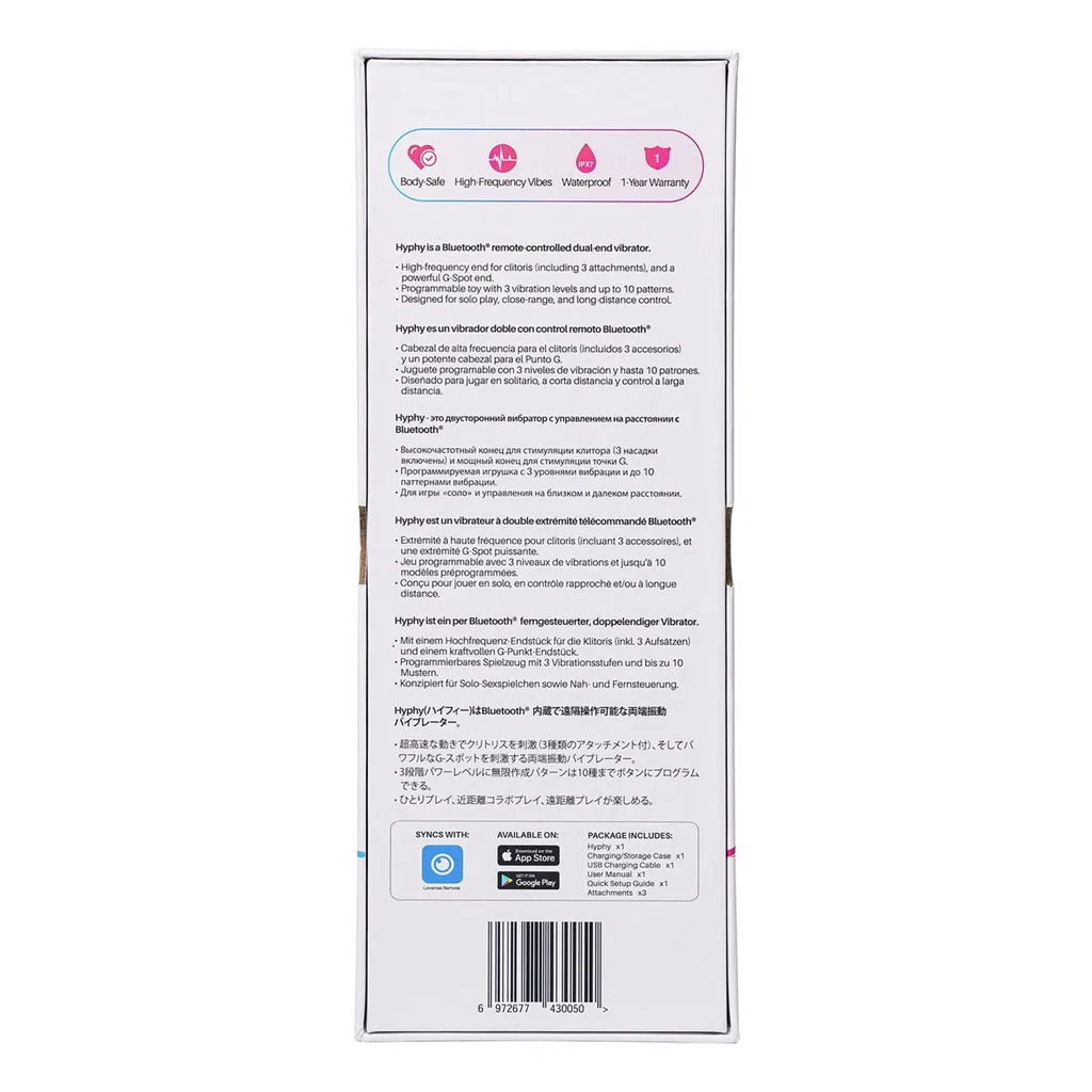 Gebruik de Lovense Hyphy dubbele vibrator om totaal verschillende soorten sensaties te ervaren. Hoogfrequente trillingen zullen je laten genieten binnen enkele seconde. Of gebruik de sterke G-Spot vibrator aan de andere kant voor lange sessies alleen of met een partner.
